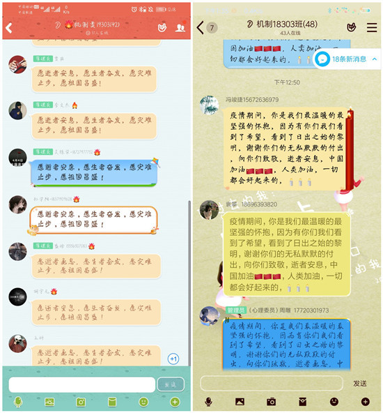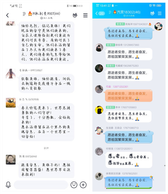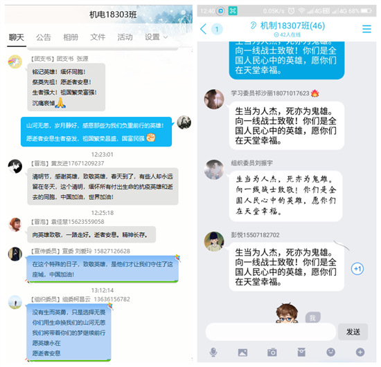 机电学子在默哀后纷纷在群内发表了对英雄的缅怀之情和追思哀悼,并许下青年誓言:续前人之志,修吾辈之身,博未来之道。