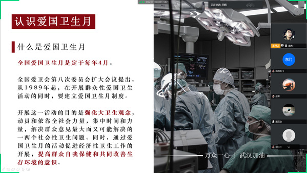 “虽然隔着屏幕,但大家的热情丝毫不减。我相信通过开展这次主题团会,支部成员以后一定会积极主动践行绿色环保、爱国爱卫的初心和使命。”团支书盛虎说道。
