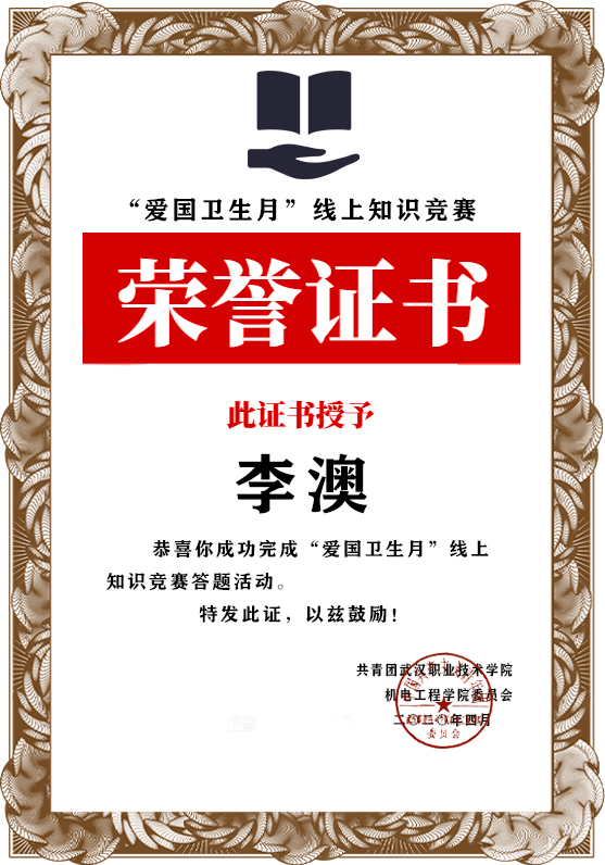 据悉,本次活动在宣传期就引起了广大学子的高度关注,根据后台数据统计,本次活动即有机电学子参加,同时还吸引到部分其他兄弟学院的学生参加,总完成答题人数共1000余人。值得一提的是,为激发广大学子参与活动的热情和动力,分团委利用网络软件制定的电子证书堪称是点睛之笔,颇受学生们欢迎和喜爱,有部分学生还表示“在家都能拿奖状,美滋滋。”