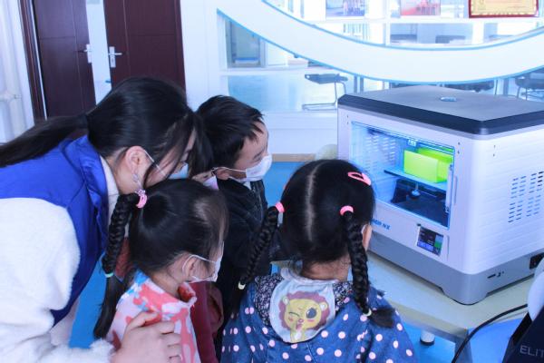 “这里有好多有趣的玩具呀!”在3D打印实训中心,小朋友们对现场展示的模型作品爱不释手。“小朋友们,你们知道这些模型是怎么来的吗?”承担科研助理工作的机电工程学院学生适时引导,“往这边瞧,就是这台机器打印出来的!” 科研助理们用生动浅显的语言,将3D打印的环节、3D打印技术发展娓娓道来。小朋友们听的格外认真,兴趣盎然地把玩着模型成品,稚嫩的眼神中流露出对新科技的好奇。