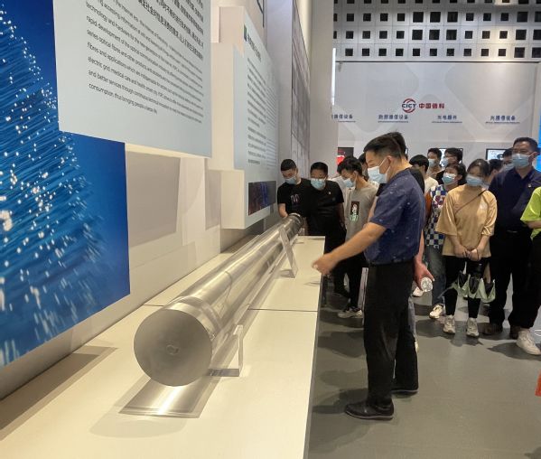 观看完宣传片,大家来到展览区,仔细听讲解员介绍,参观每一个展品。一件件引人入胜的高科技产品,代表了光谷在国内和国际的科技领先地位,从不同角度展示了我国的科技发展成就。参观过程中,不时有师生提问,讲解员一一作答。