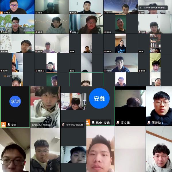2月28日以来,全体辅导员、班主任按照学校和学院要求,每周精心组织召开“云”班会。居家上网课的机电工程学院学子们相聚“云端”,闲聊寒假和未返校期间各自的学习与生活,共同学习袁昌宁老师所录制的“微思政”课,共话成长。