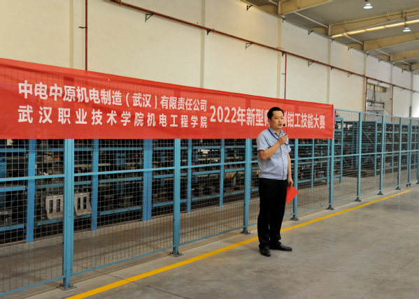 中原机电总经理、机电党支部书记钟勇主持决赛开幕式,表达了希望校企双方通过比赛加强沟通,创新推进产教融合,协同培养技术技能人才的意愿。 中原机电副总经理钱远方,机电工程学院院长卢洪胜、分党委书记桂毅及相关专业骨干教师出席开幕式。