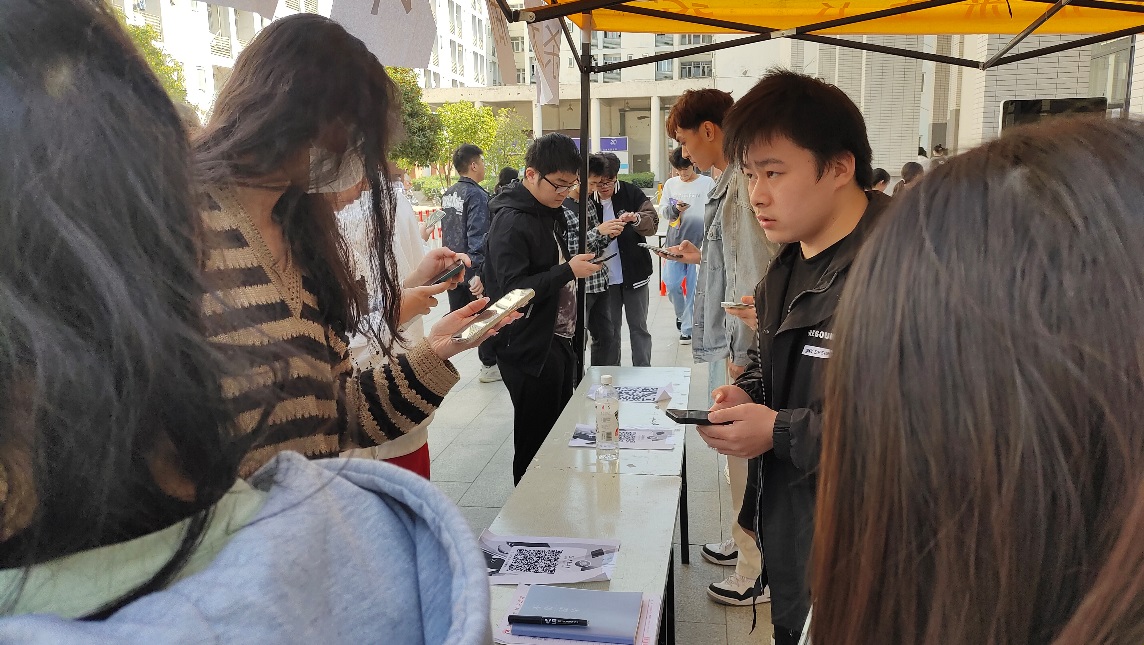 11日、18日,熙熙攘攘的东三食堂门口,出现了许多埋头苦“答”的身影。“我100分满分”“好可惜啊,我才65分!现在电诈的手段真是狡猾啊”......在活动工作人员引导下,机电学子们有序进行防诈知识答题,了最新电信诈骗案例,提高反诈意识。