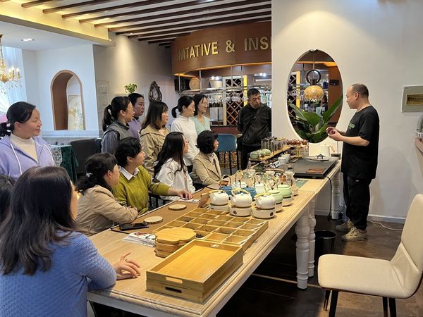 烘焙体验结束后,老师们又跟随茶道老师体验泡茶、品茶。“不同的茶适用不同的茶具和不同的水温;即使同一道茶,要获得最佳口味,每一泡的时间都各有不同……”老师们一边品茶,一边听茶道老师讲解。有的老师表示计划在家里也要学茶艺品香茗。
