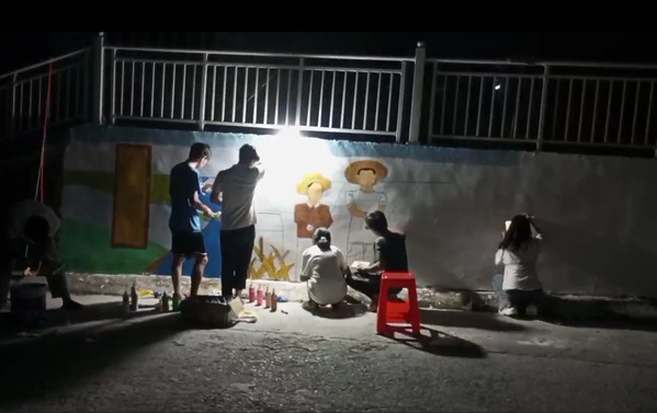 “我们在文化墙边一人一个小板凳,绘画的时候板凳是我们的工作台、歇脚处,吃饭的时候板凳是我们的饭桌。”熊龙辉笑道,“有天很晚了,村民给我们准备了宵夜。我们奉献青春的同时,他们肯定我们、关怀我们,大家心里都暖暖的。”