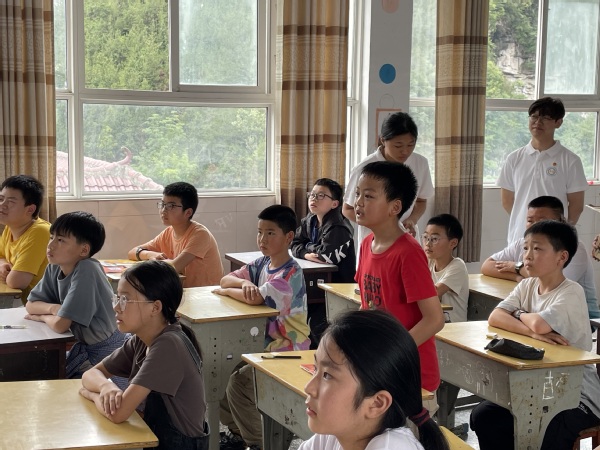 随后,队员们分组教学生唱中国共青团团歌《光荣啊,中国共青团》。悠扬的旋律从教室传出,在山间飘扬,主题团日活动也在高声齐唱中结束。