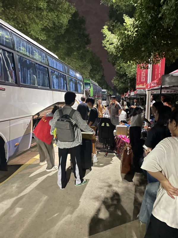 回迁当天,学生在校团委与机电学院分团委学生志愿者的帮助下,有序搬运行李,按批次对号入座,高效装车,按原定计划顺利发车。