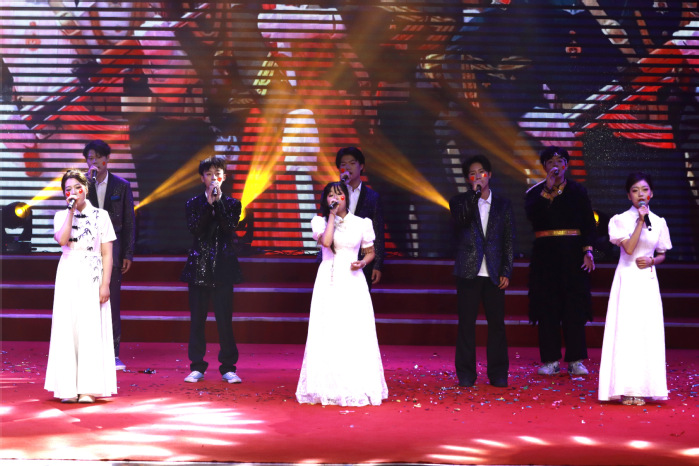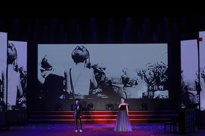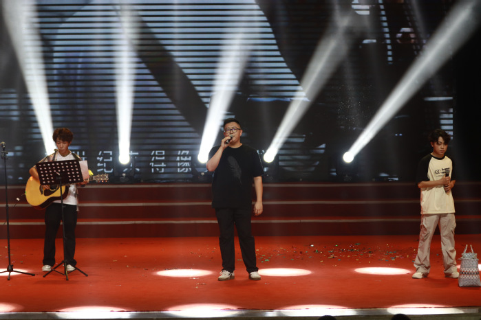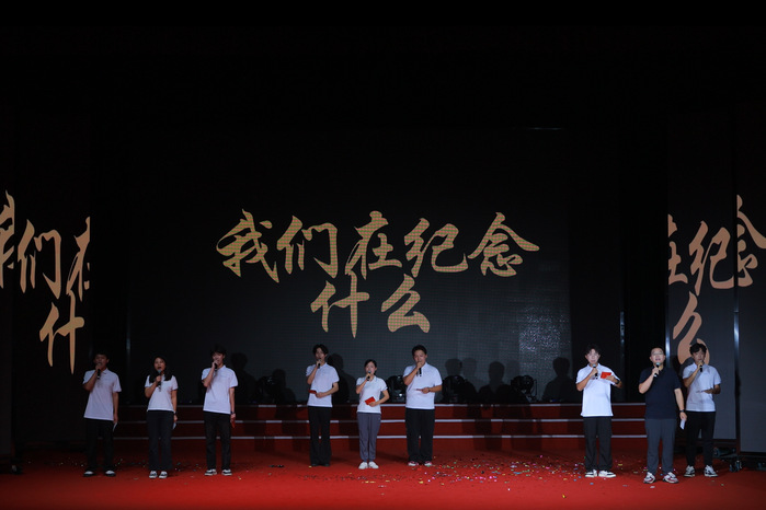 第三篇章以家国情怀为核,通过歌曲、朗诵串联对山河的礼赞、历史的铭记与家国的深情。学子们以《山河》为志,唱出中华民族伟大复兴的磅礴气势;主题朗诵《我们在纪念什么》带领观众回望山河破碎却众志成城的岁月,以铿锵之声告慰历史、寄语未来与世界:“我们永志不忘”;陈宇演唱《相思》,以轻柔歌声诉绵长牵挂与文化情愫,尽显东方韵味;《紫荆花盛开》旋律响起,学子们以深情演绎,传递对祖国统一、家国同心的期盼。