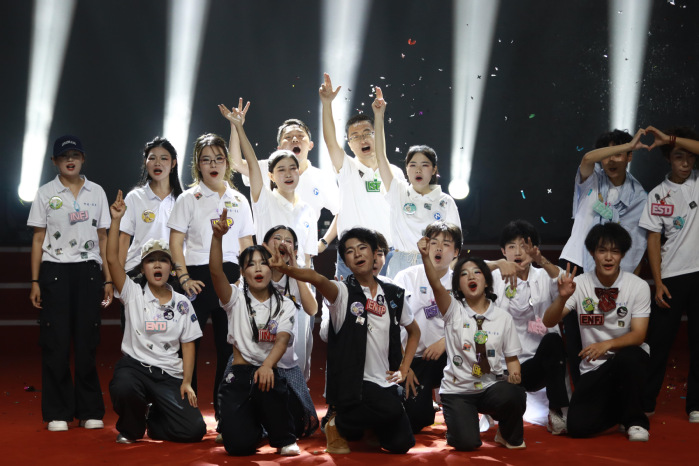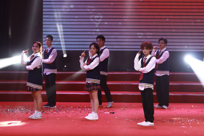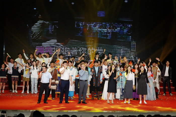 第四篇章以“美好” 为核,汇聚舞蹈、歌曲、民族展示等节目,既展新生活力,亦传未来憧憬。严美晴领衔的舞蹈团队带动台下观众同舞,尽显元气与魅力;钢琴伴奏下,《如愿》缓缓登场,学子们以清澈嗓音诉说对生活的热爱与梦想的执着,“你曾苦过我的甜,我愿活成你的愿” 的歌词,引发师生情感共鸣;民族展示环节,一针一线缝华夏春秋,一袖一袂扬五十六族风采,各民族学子身着华丽服饰,随鼓点律动、伴锦缎呼吸,踏《向阳而生》旋律而来。