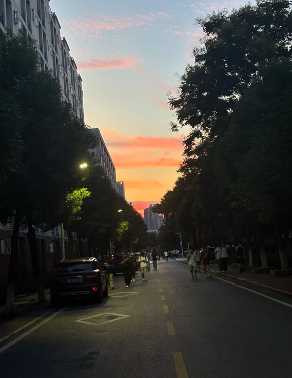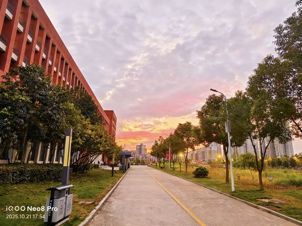 “不用专业相机,手机也能拍好校园!”活动启动之初,学院通过辅导员宣讲、班级群分享等方式发起号召,鼓励同学们用“随手拍”记录身边的校园点滴。活动期间恰逢运动会举办,部分同学捕捉到运动会的鲜活瞬间,如短跑选手冲线时扬起的手臂、队友间递水的默契互动;而更多镜头则聚焦于日常校园的多样场景,既有自然与生活交织的景致,如朝阳漫染的钟楼、缀满枝头的桂花、蜷卧晒暖的慵懒小猫、铺展天际的盛大晚霞;也有浸满学习与生活气息的场景,像夕阳斜照的走廊、课堂实训时的专注模样、教学楼角落流转的光影。这些生活化画面均成为同学们表达情绪的重要载体,且每幅作品都附有“情绪注解”,让影像背后藏着的心声与感受更易被读懂、有共鸣。