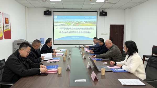 (通讯员 张旭 左艳迪)11月19日,河南省职业院校教师素质提高计划国家级培训工作专项调研组专家薛东亮、周伦钢、崔自杰、郭梦琨一行4人莅临我校,针对我校承办的“2025年河南省职业院校教师素质提高计划--机电技术应用培训项目”开展专项调研和验收工作。学校党委副书记田明华出席调研会,智能制造学院党委书记江辉、继续教育与培训处副处长计四勇,以及此次培训项目团队教师等参加座谈。调研会由计四勇主持。
