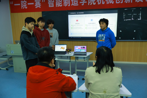 竞赛自启动以来,吸引了智能制造学院各专业学生踊跃参与,共收到多支团队提交的创新作品。经过11月18日的初赛线上评审,10组优秀团队成功晋级决赛。决赛采用“现场讲解+PPT演示+评委提问”的形式进行,每队在8分钟展示与5分钟答辩中,充分展现了项目的设计思路、技术亮点与创新价值。