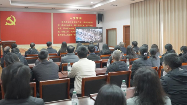 专题学习环节,全体党员集体学习党的二十届四中全会精神。党的二十届四中全会擘画了高质量发展蓝图,明确提出“加快建设现代化产业体系”“一体推进教育科技人才发展”的战略部署。