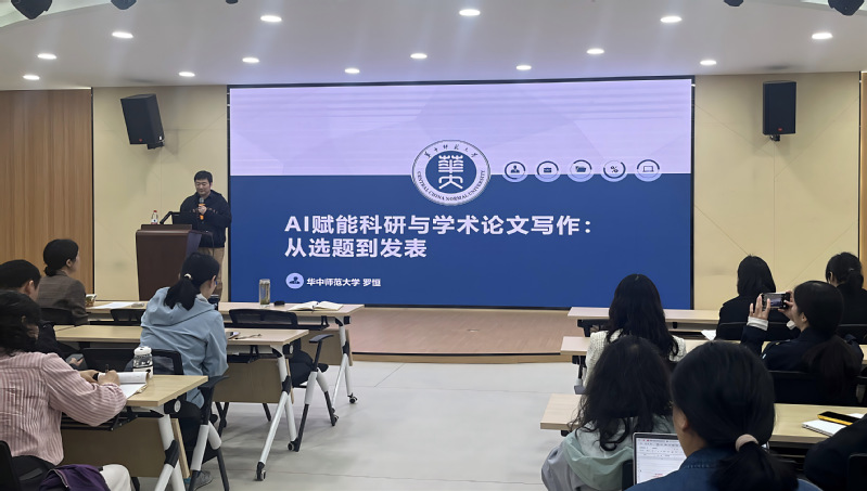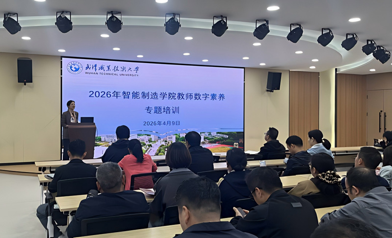 (通讯员程宇翔)2026年4月9日,智能制造学院于第二工业中心四楼学术报告厅成功举办“智研赋能·数字领航”教师数字素养提升第一期专题培训。本次培训以“人工智能赋能科研工作的路径与实践”为主题,特邀华中师范大学人工智能教育学部罗恒教授主讲,由智能制造学院院长朱红主持,学院全体教师参会学习。